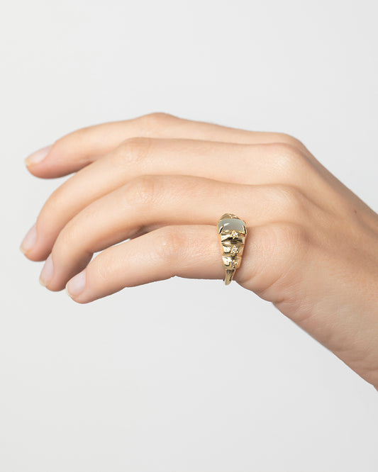 Anel Estrela Duplo em Ouro 18k e Diamantes