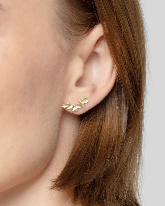 Brinco Earcuff Folha em Ouro 18K e Brilhantes