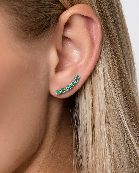 Brinco Earcuff Manu Esmeraldas em Ouro Branco 18K