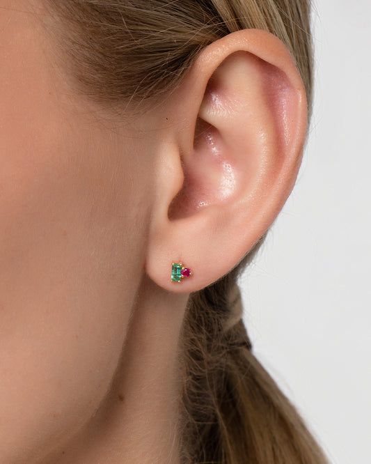 Brinco Baguete Petit em Ouro 18K com Rubi e Esmeralda