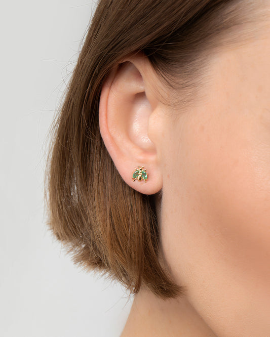 Brinco Flea Petit de Besouro em Ouro 18K e Esmeraldas