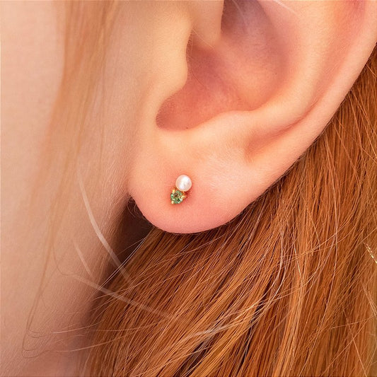 Brinco Infantil Olive em Ouro 18K com Pérola e Esmeralda