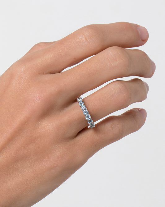 Meia Aliança Manu em Ouro Branco 18K e Água-Marinha