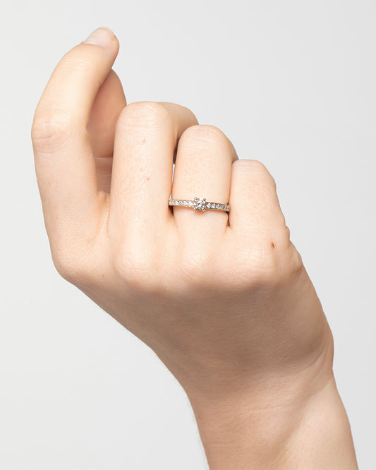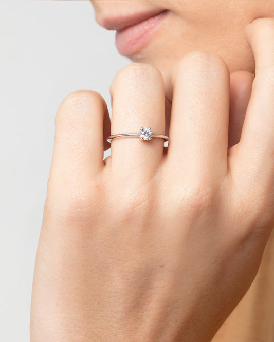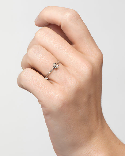 Anel Solitário Purity em Ouro Branco 18K com 24 Pontos de Diamante
