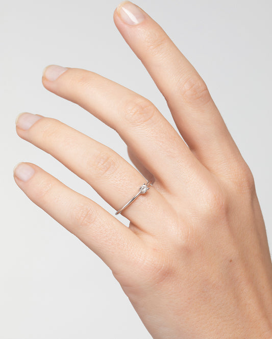 Anel Solitário Purity em Ouro Branco 18K com 11 Pontos de Diamante