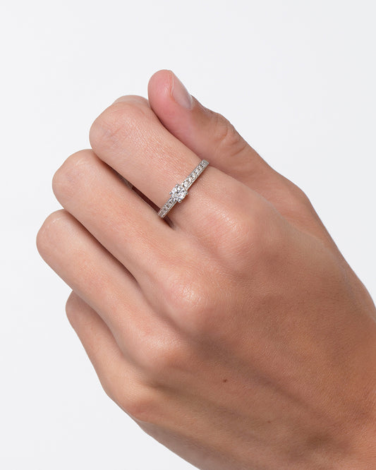 Anel Solitário Immensity em Ouro Branco 18K com 37 Pontos de Diamante
