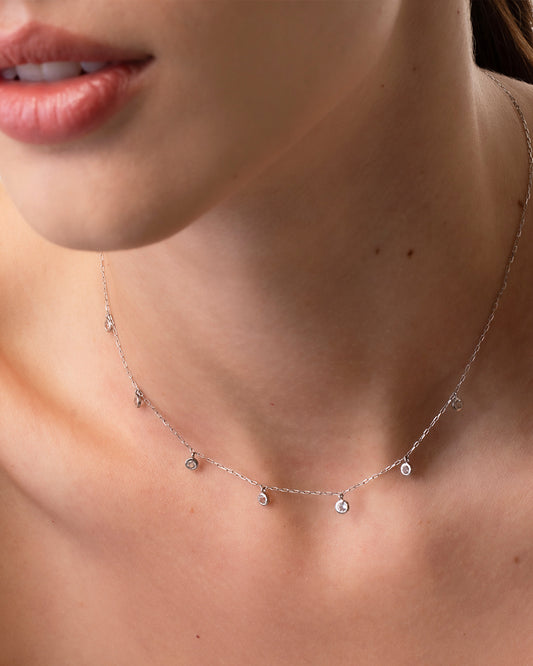 Colar Dots White em Ouro Branco 18K e Pingentes de Topázios Brancos