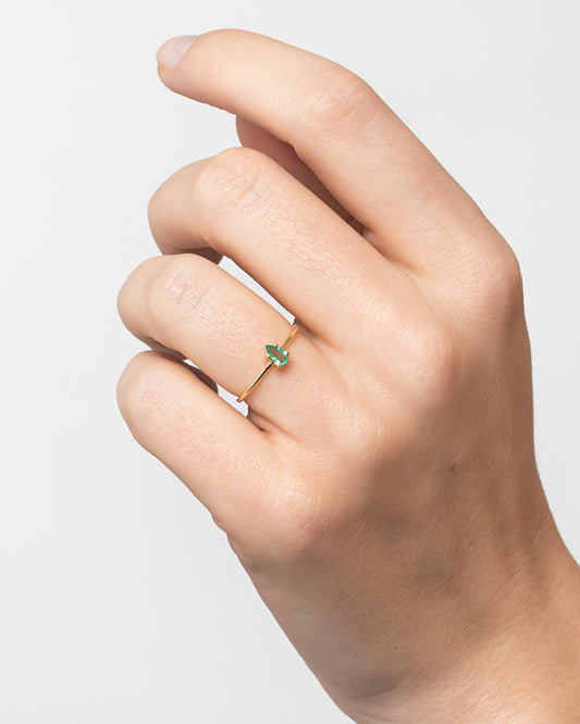 Anel Solitário Clara em Ouro 18K e Gota de Esmeralda