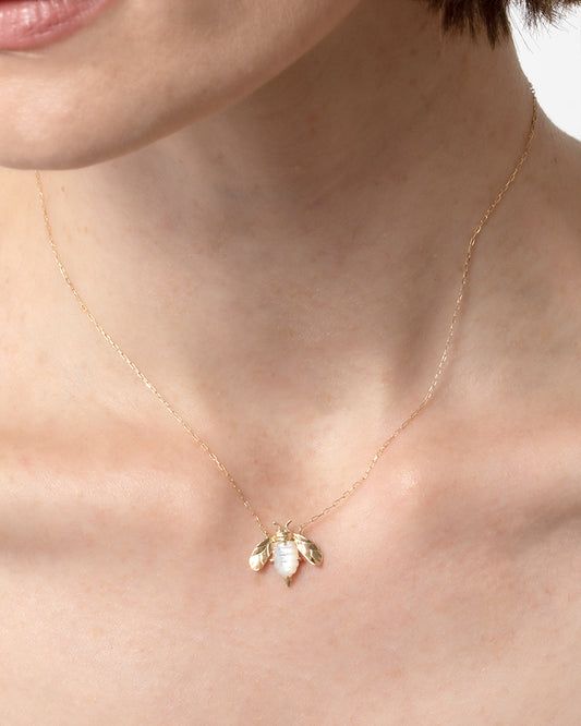Colar Abelha Pólen em Ouro 18K com Madrepérola e Brilhantes