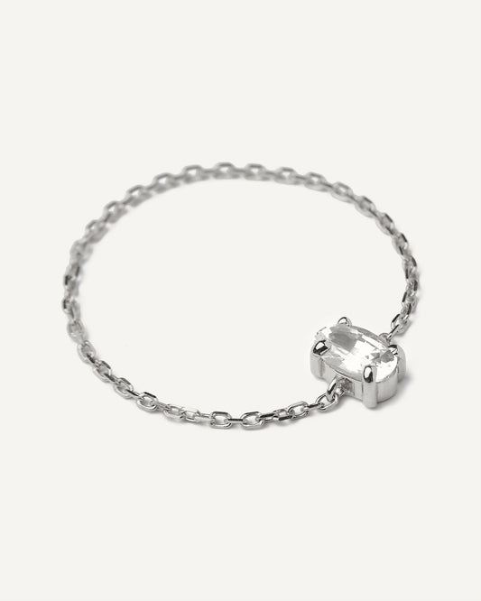 Anel Corrente Oval em Ouro Branco 18K e Safira Branca