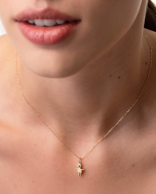 Pingente Filho para Colar em Ouro 18K com Safira Azul e Brilhante