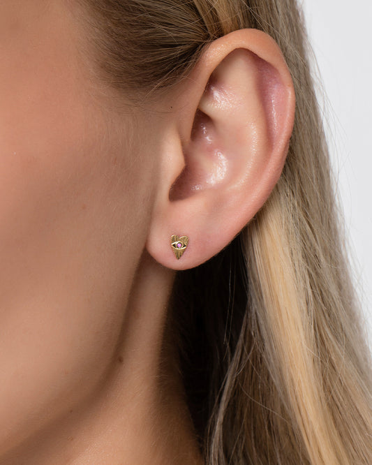 Brinco Cór Petit de Coração em Ouro 18K e Rubi