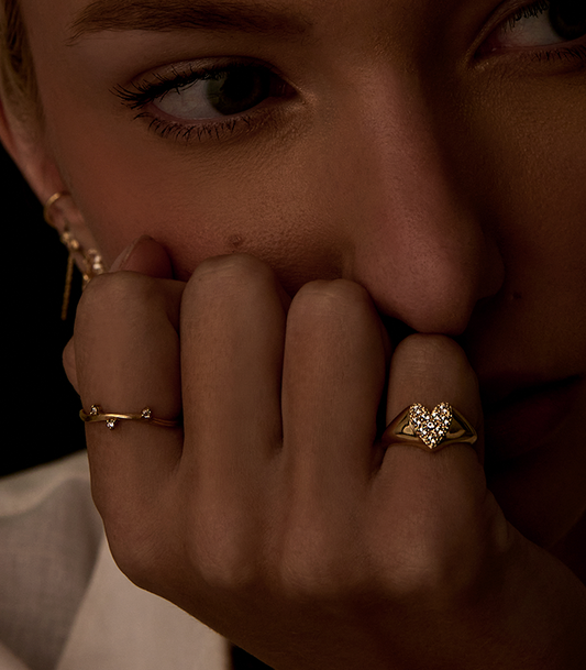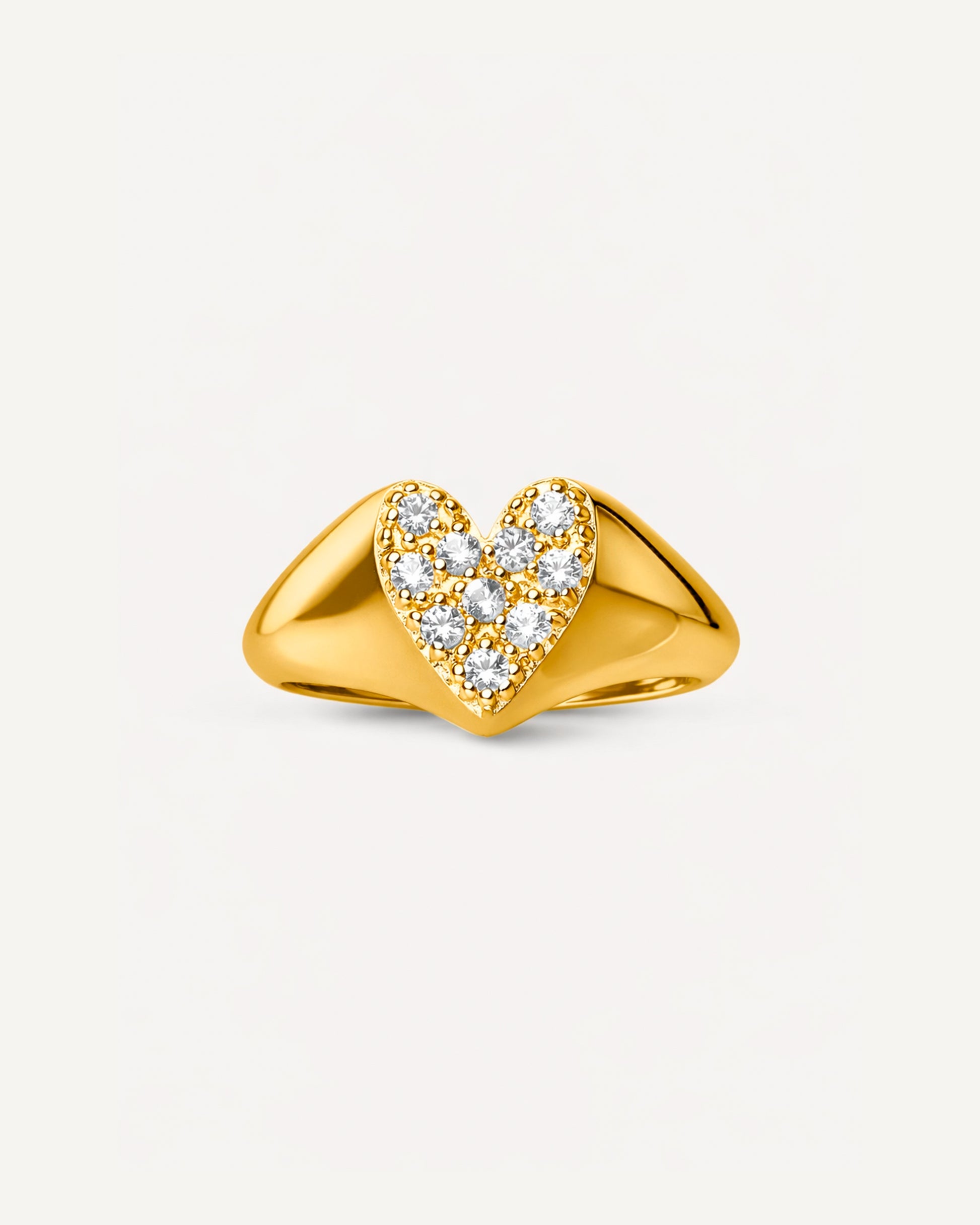 O Anel Dear é confeccionado em Ouro Amarelo 18K e possui dez Safiras Brancas de 1,5mm. O topo do anel, em formato de coração, possui 7x9mm.