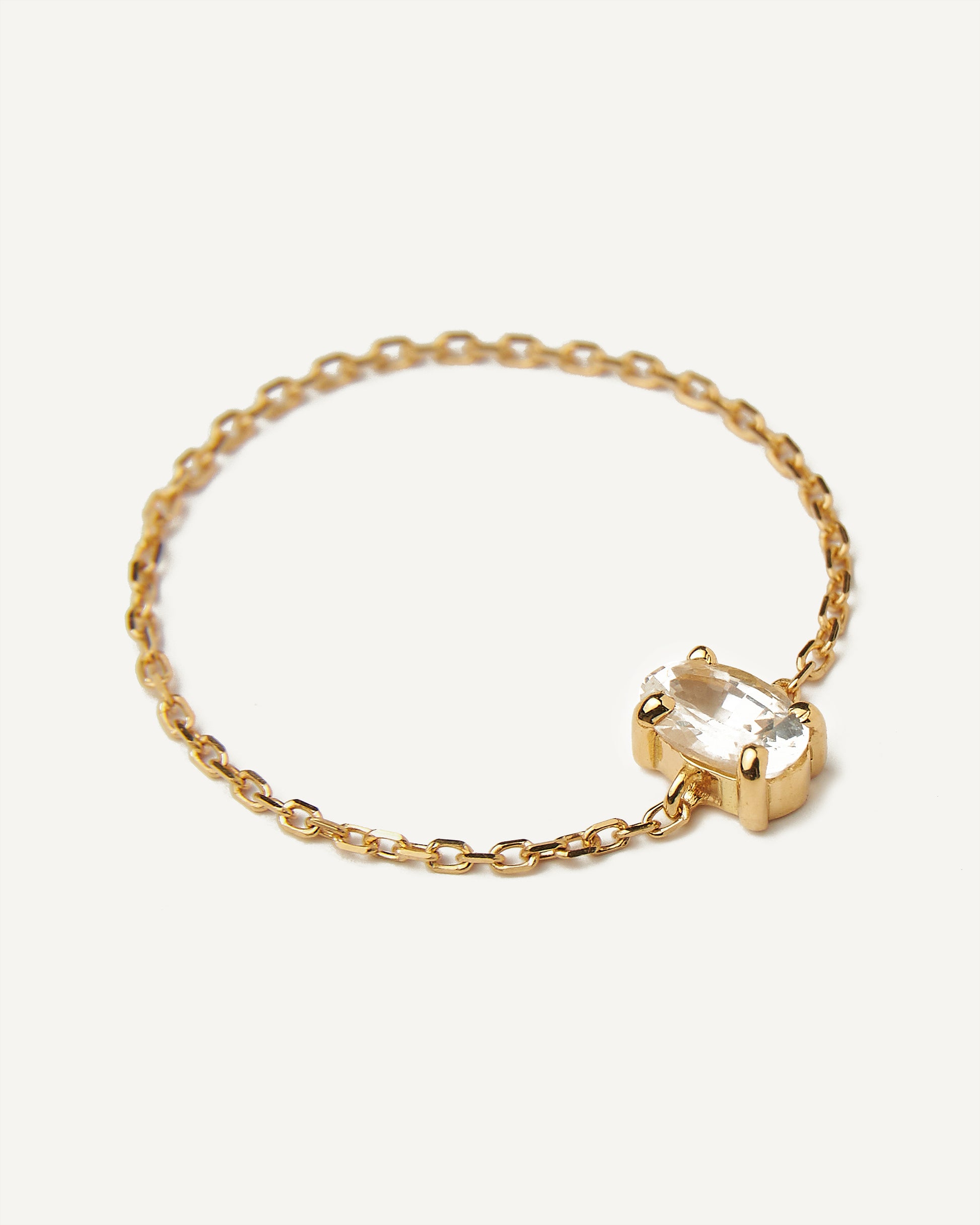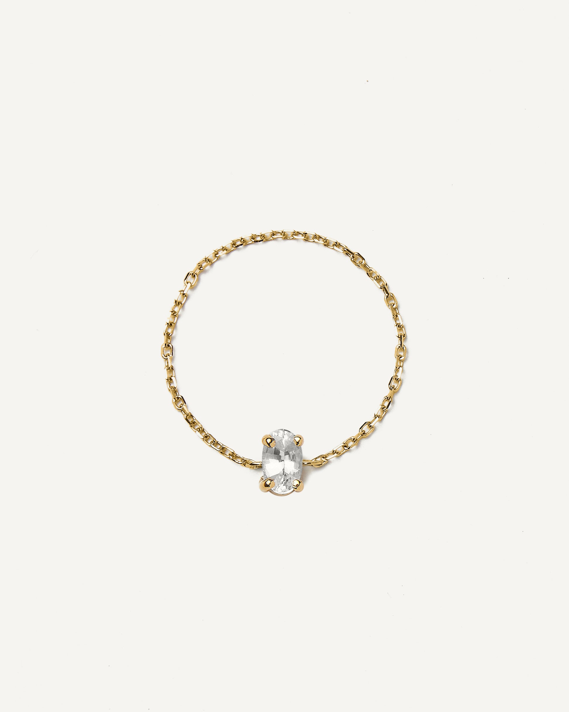Anel Corrente Oval em Ouro Amarelo 18K e Safira Branca