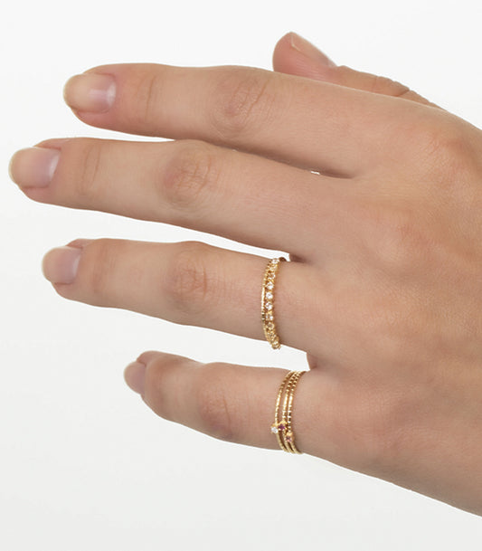 O Anel Lil é confeccionado em Ouro Amarelo 18k e Rubi Diamantado de 1,5mm.