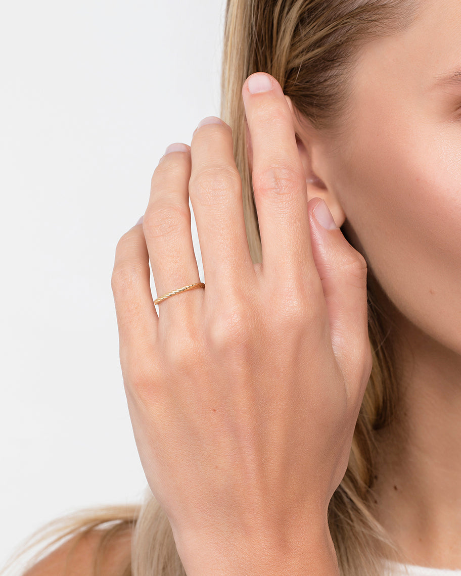 O Anel Twist é confeccionado em Ouro Amarelo 18k.