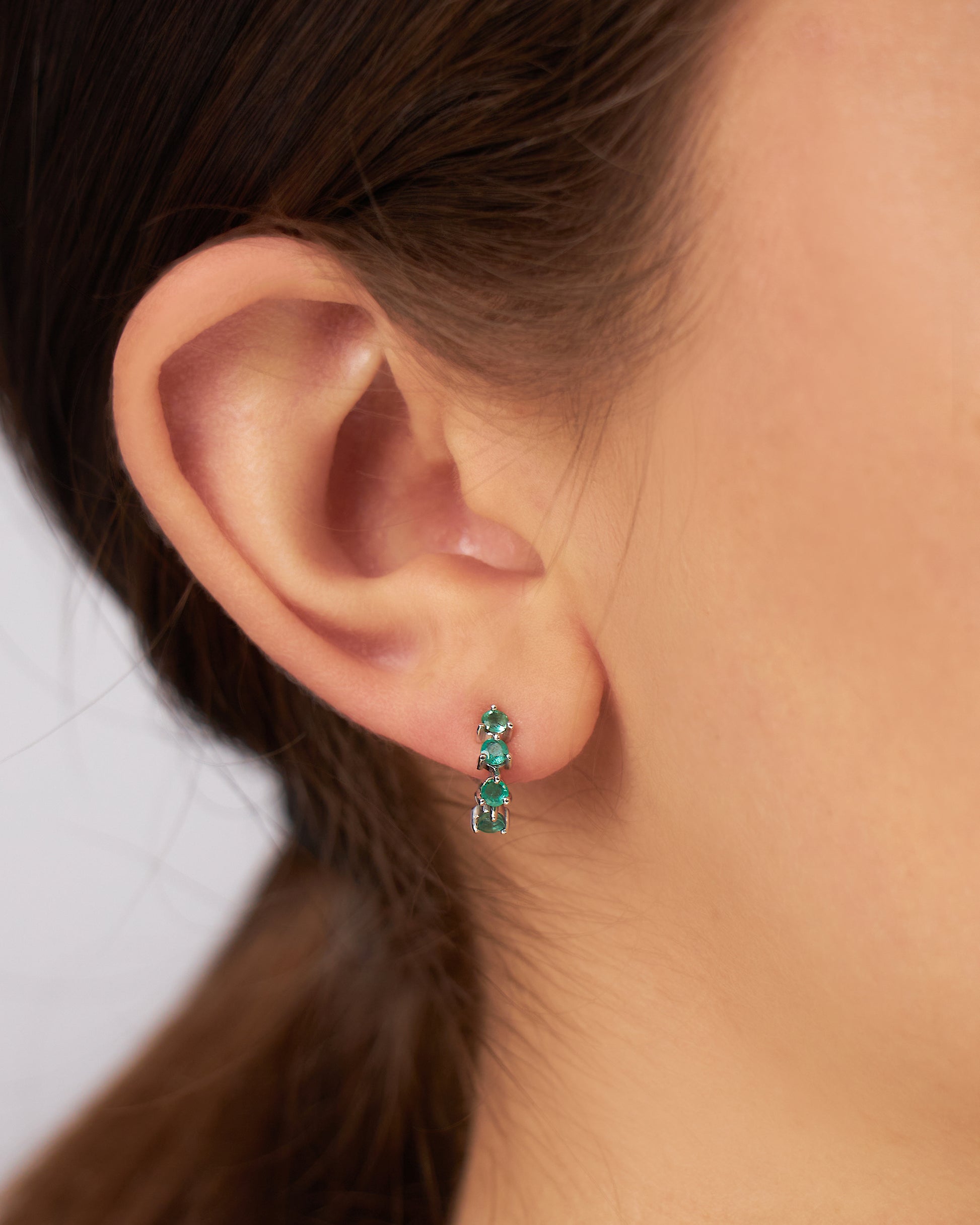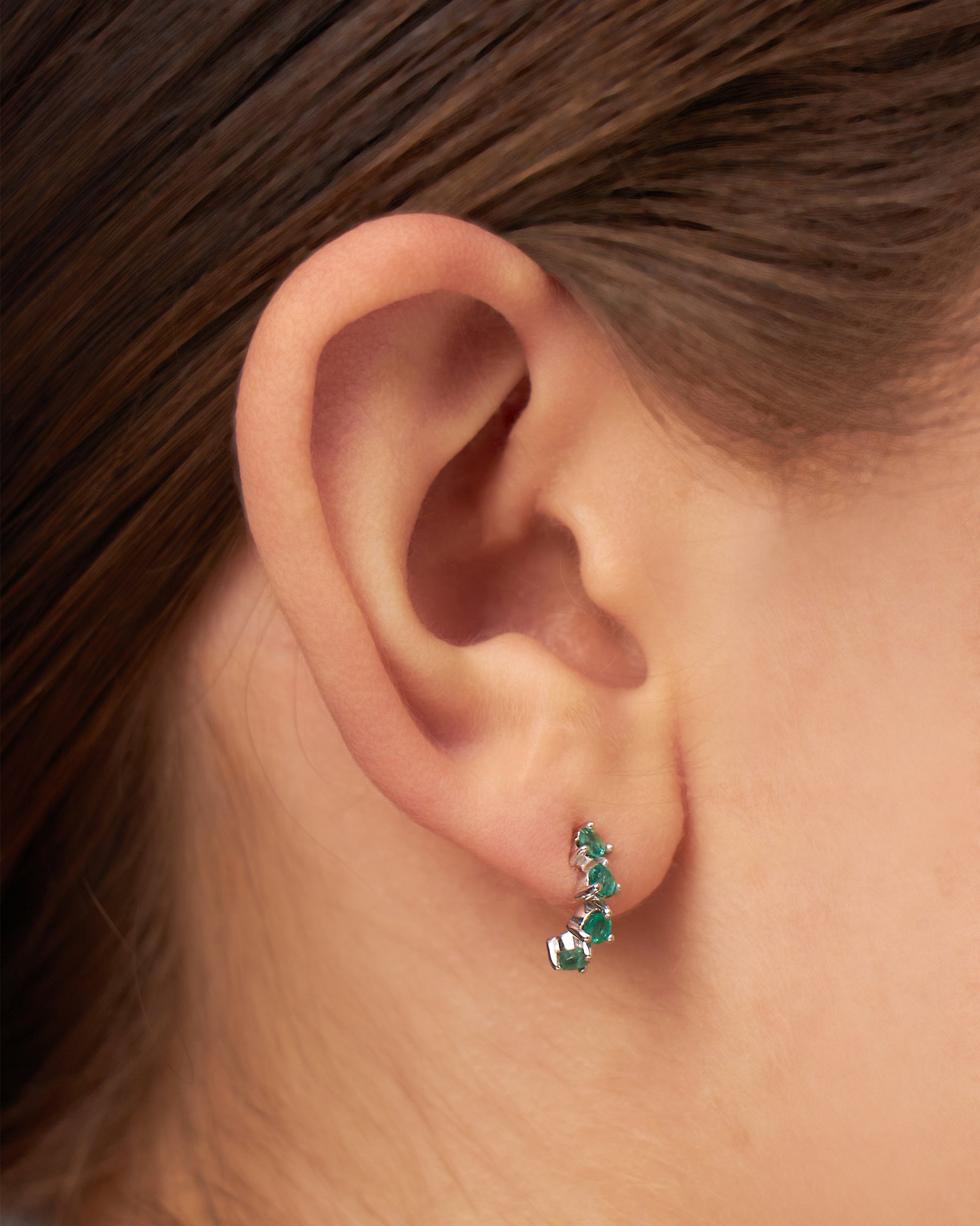 A Argola Emma (unitária) é produzida em Ouro Amarelo 18K e possui quatro Esmeraldas redondas de 2,5mm.