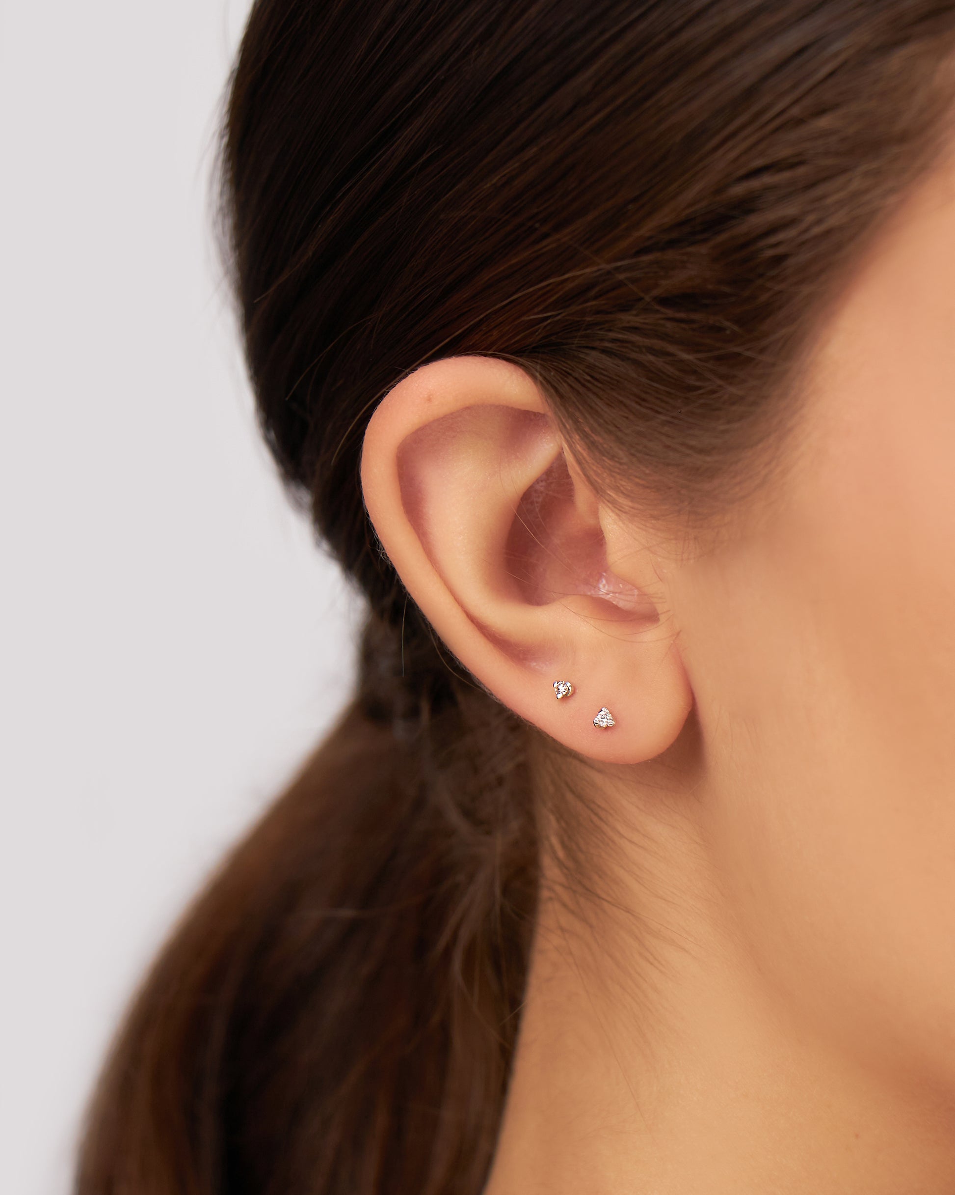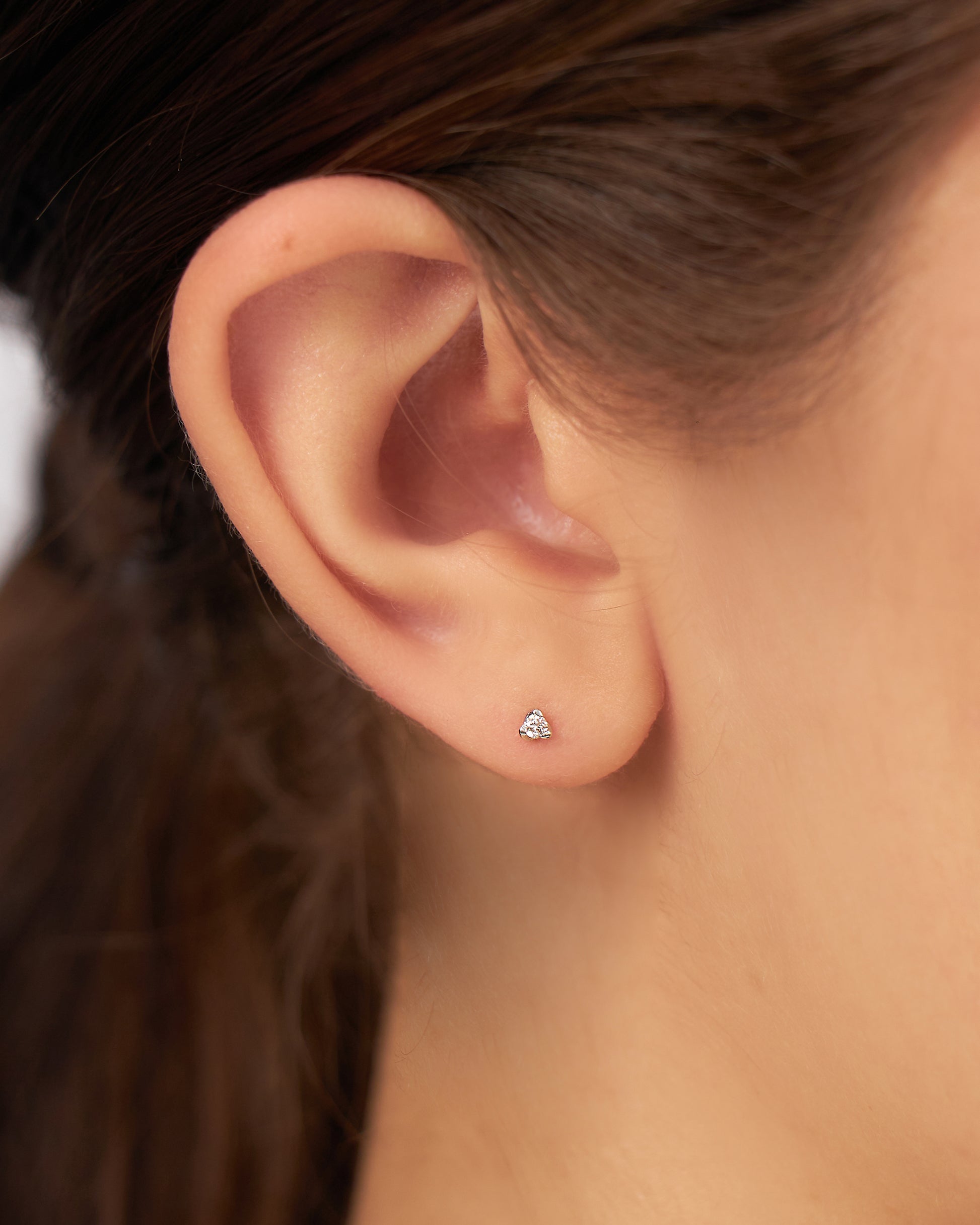 O Brinco Solitário Petit é confeccionado em Ouro Branco18K e cada pé possui um Diamante Branco de 3 pontos - e o pé possui ao todo 2,5mm.