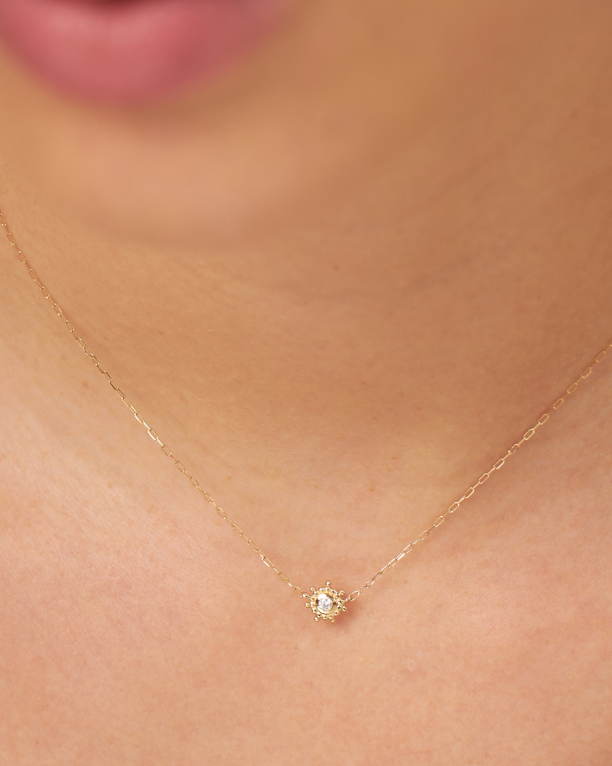 O Colar Apolo é confeccionado em Ouro 18k e um Diamante Branco de 3 pontos.