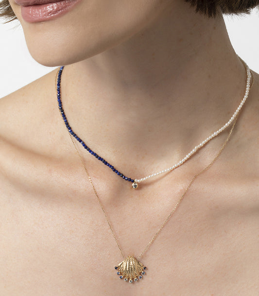 Colar Fortuna em Ouro 18k com Pérolas e Lápis-Lazúli