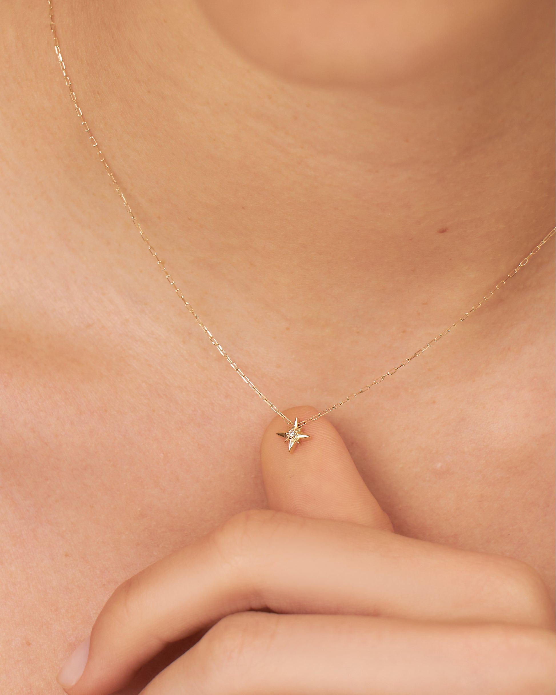 O Colar Estrela Índigo é confeccionado em Ouro Amarelo 18K e Diamante Branco de 1 ponto, seu pingente possui 7x7mm e sua corrente possui 40 cm com elo no 37 e 34, o que permite que use-o mais justo - como se fosse uma gargantilha. Desta forma, você pode criar uma composição de colares no colo, usando alguns mais curtos e outros mais longos.