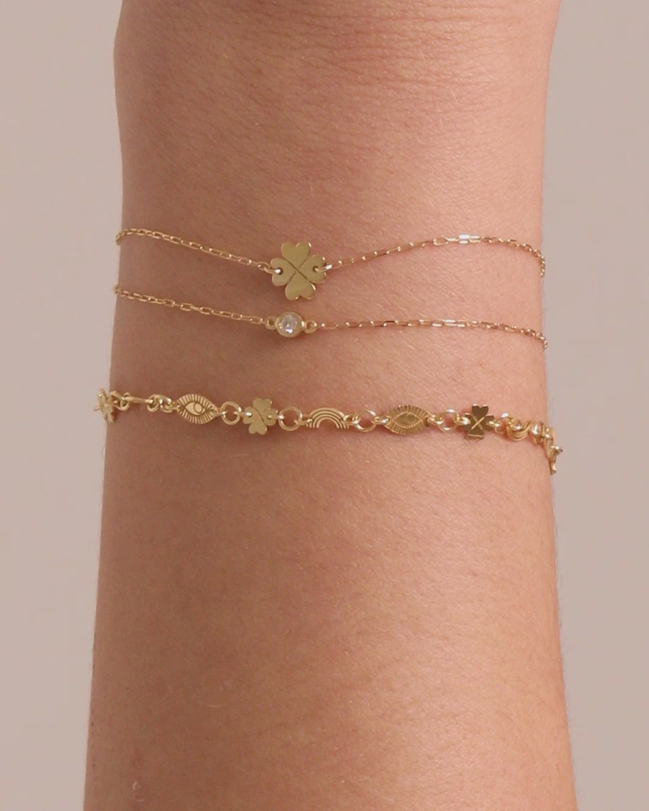 A Pulseira Trevo é produzida em Ouro Amarelo 18K e tem ao centro um trevo de aproximadamente 5x5mm.