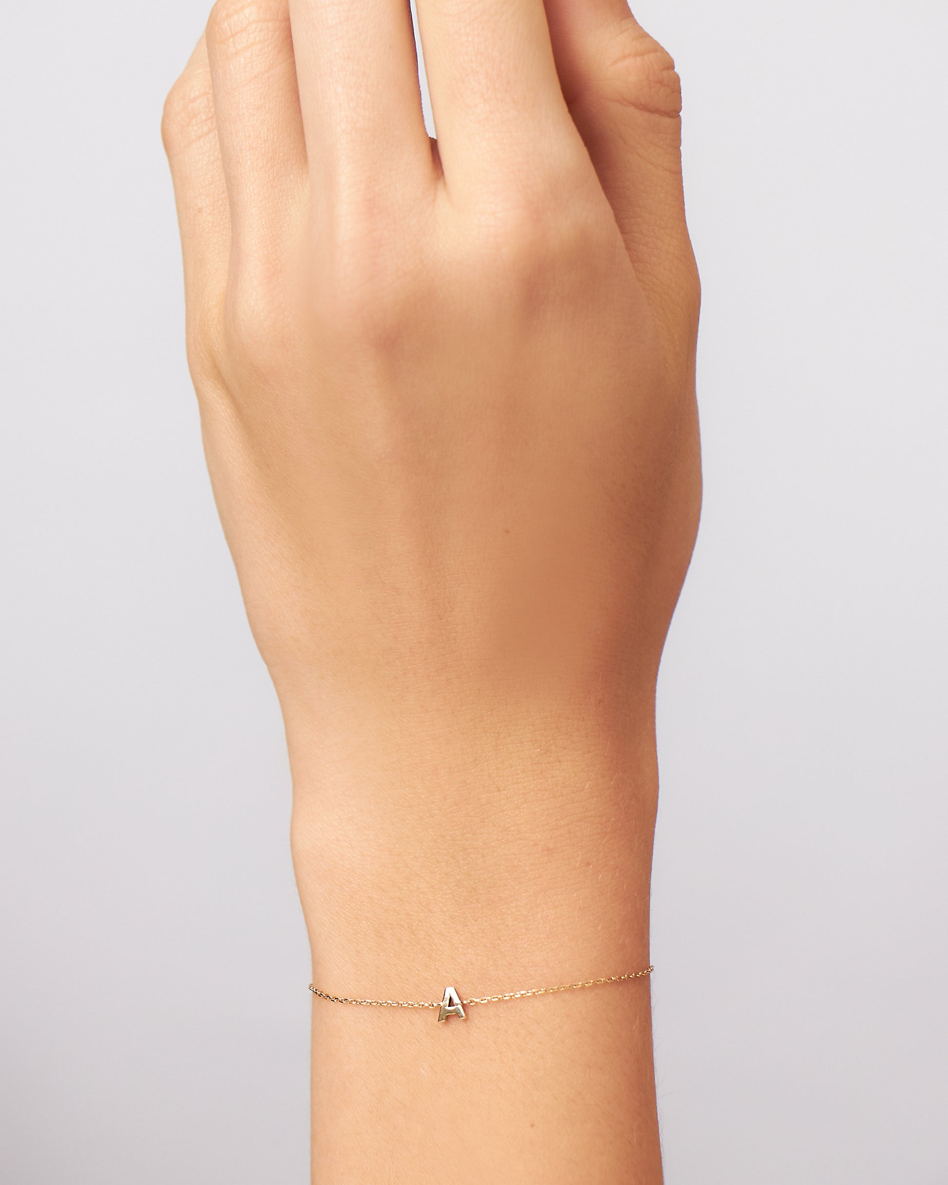 A Pulseira Inicial é confeccionada em Ouro Amarelo 18k. Sua inicial possui aproximadamente 5mm. A corrente tem 18cm com elos extras de ajuste no 15, 16 e 17cm.