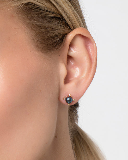 Brinco Nébula em Ouro 18K com Pérola e Safira